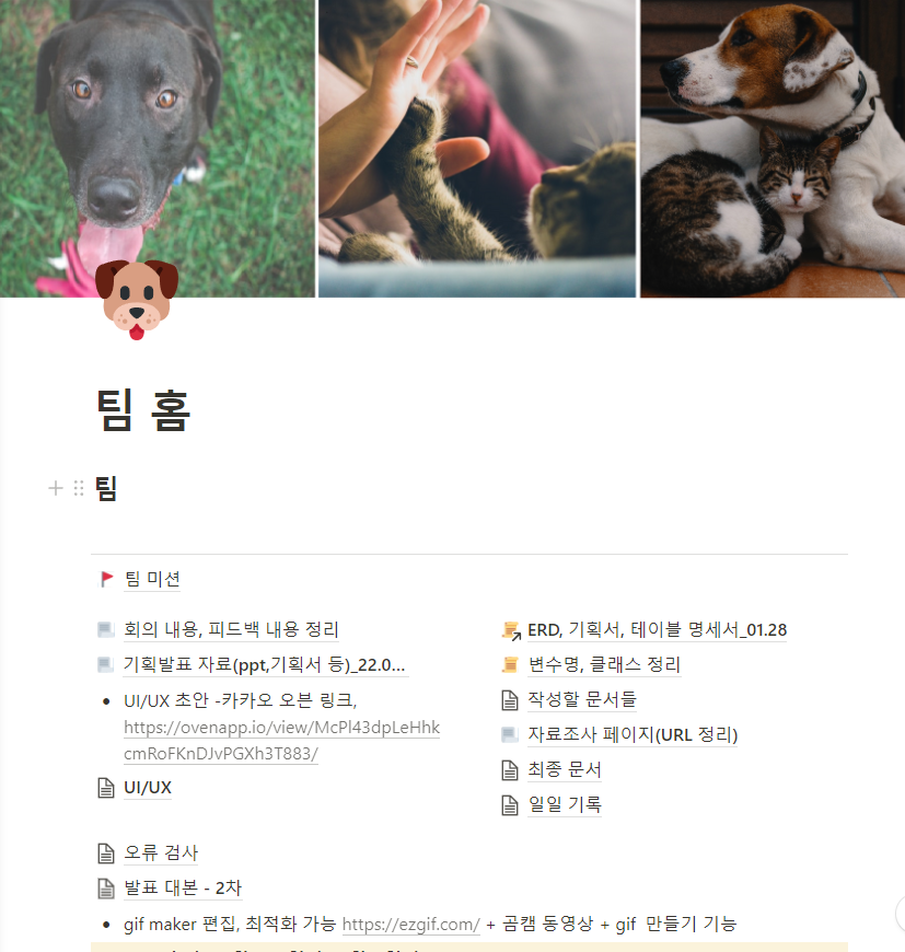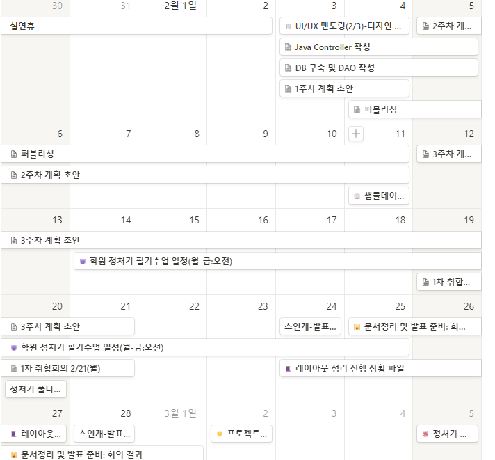 나는 스마트인재개발원에서 1차 팀 프로젝트와 2차 팀 프로젝트에 둘 다 노션으로 일정관리를 했다.