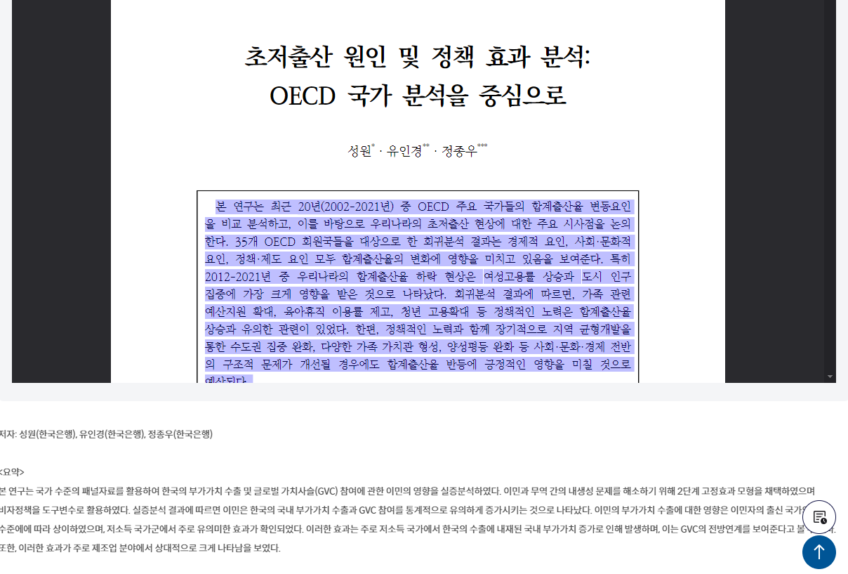 초저출산 원인 및 정책 효과 분석: OECD 국가 분석을 중심으로 | 경제분석(상세) | 연구자료 | 한국