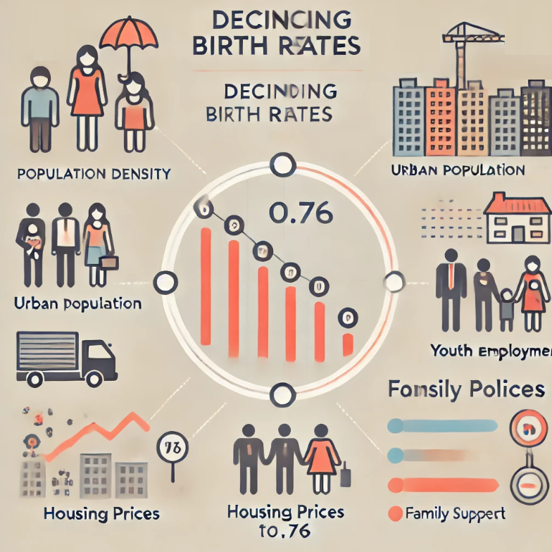 한국의 저출산 문제는 경제적, 사회적, 제도적 요인이 복합적으로 작용한 결과입니다. 가족 정책과 육아휴직 같은 정책적 노력도 중요하지만, 장기적으로는 사회적 규범의 변화, 특히 도시화로 인한 과밀 문제를 해결해야 출산율 회복에 긍정적인 영향을 미칠 수 있습니다.